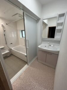 ①窓のサイズ・床材を変えることにより外気の影響を受けにくく寒かったお風呂が改善された
